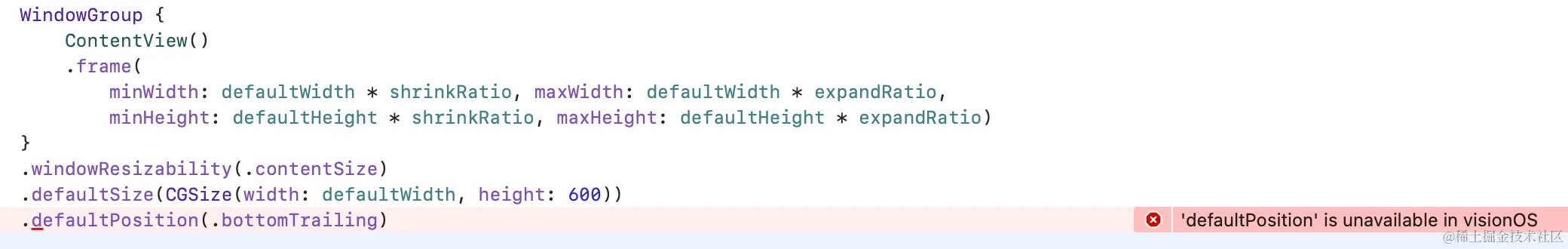 这里我们需要控制的是 Window 而非 View,因此通过 Window 的.defaultSize modifier 即可指定大小。