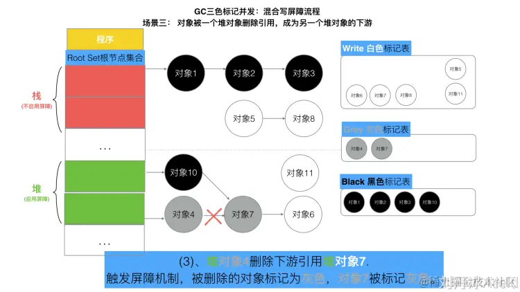 注意混合写屏障是Gc的一种屏障机制,所以只是当程序执行GC的时候,才会触发这种机制。