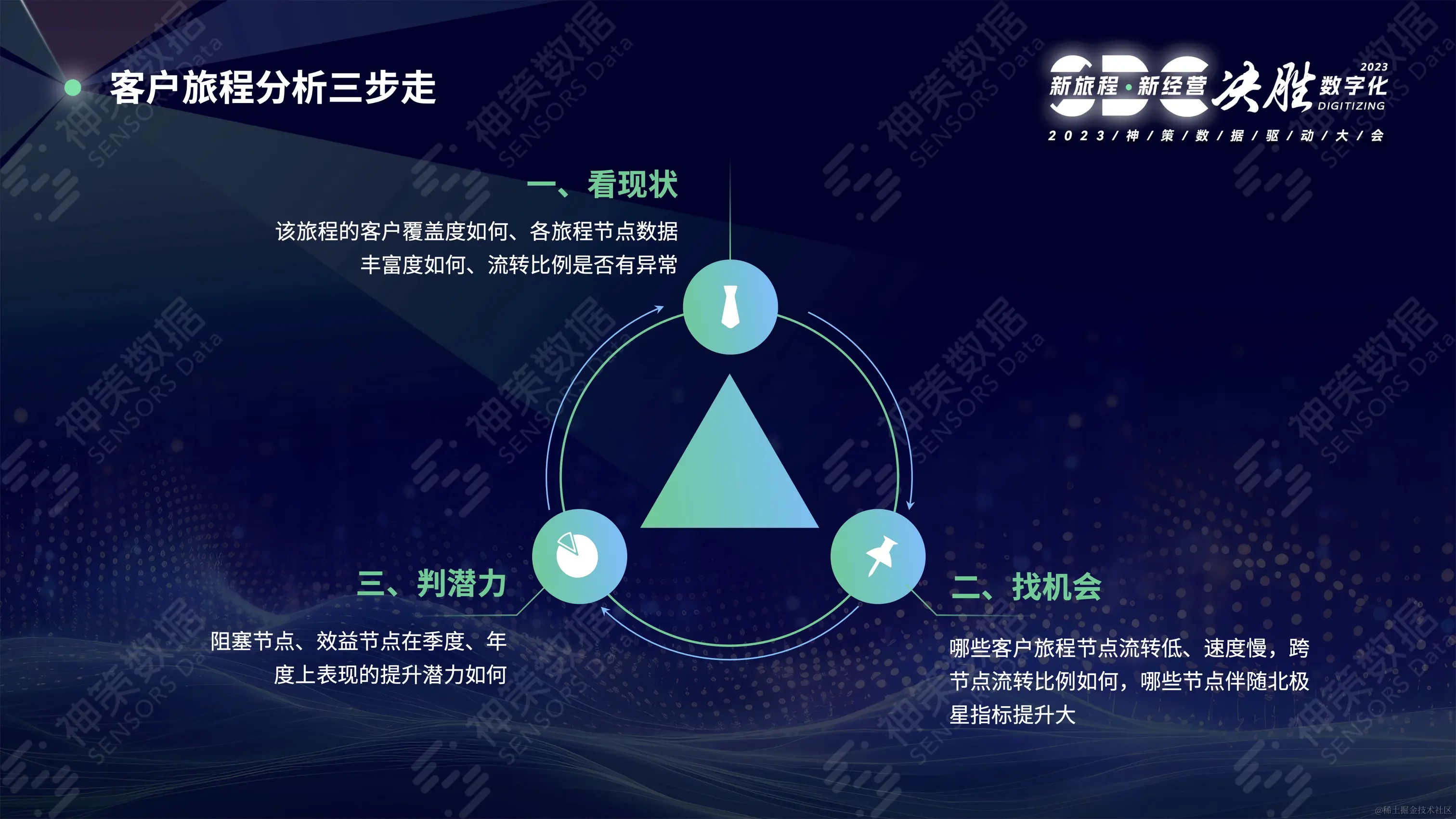 完成旅程指标梳理后,需要对其进行分析。客户旅程分析分为三个步骤: