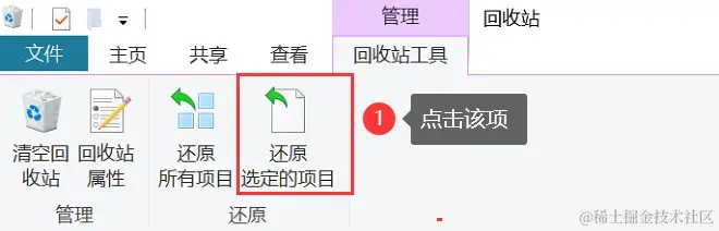 第2步:在回收站中勾选上需要恢复的文件后。点击上文【还原选定的项目】。