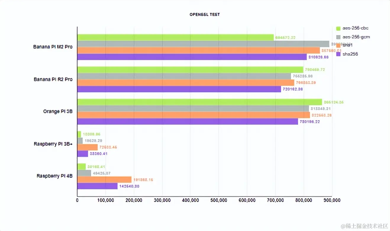 内置加密引擎加速了服务器应用程序中与数据保护相关的任务,我们只注意到 CBC 加密的速度有轻微异常,我们认为这与 SoC 的 Amlogic 设计中的硬件实现有关。
