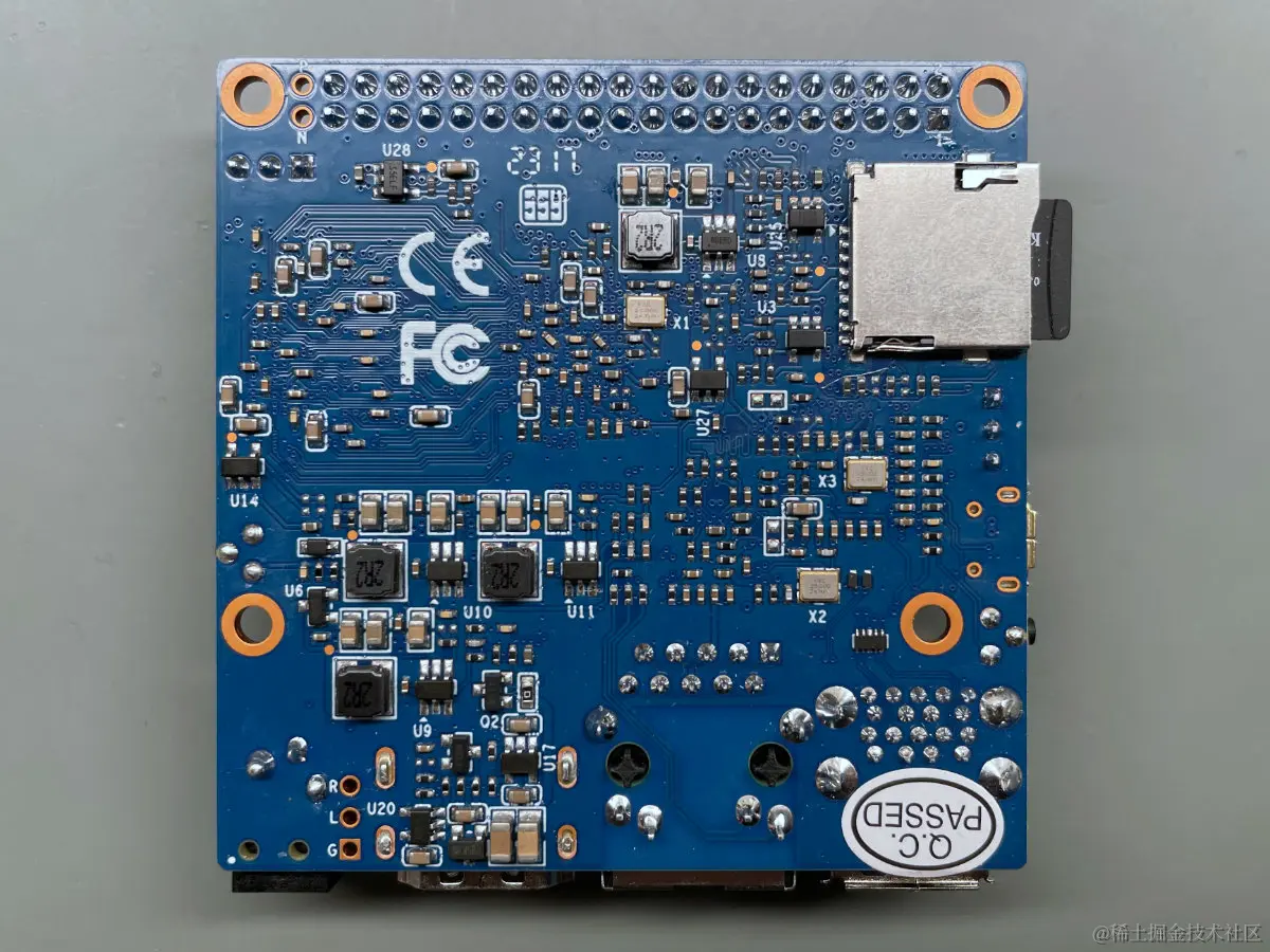 SD卡可用于存储数据和操作系统的映像,其推推槽安装在板子的底部,同时它也是安装在底部的唯一“外围设备”,从而使 SBC 适合安装在外壳中,无需稍后提取以进行精加工。板的角部还有四个接地安装孔,适合将板固定在所需的位置。