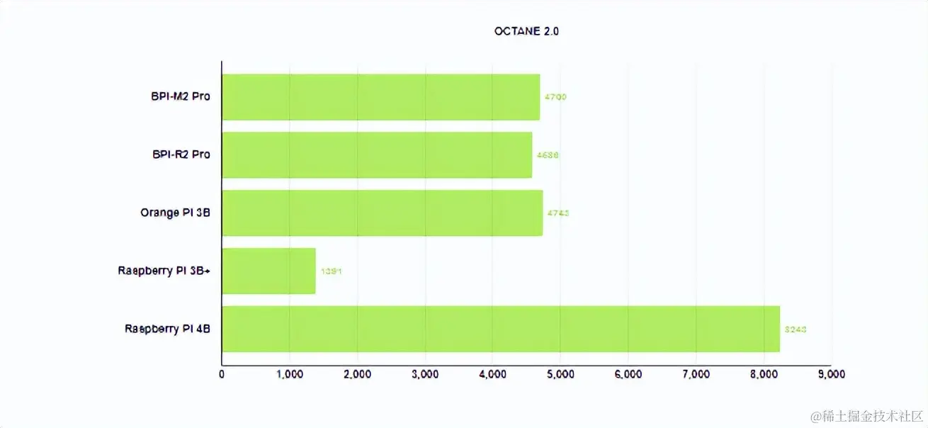 Octane 2.0 的值为 4700,在前面提到的 SBC 范围内。操作手感介于Raspberry Pi 3和Raspberry Pi 4之间。