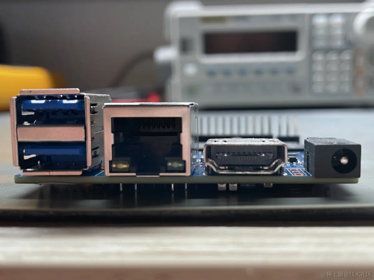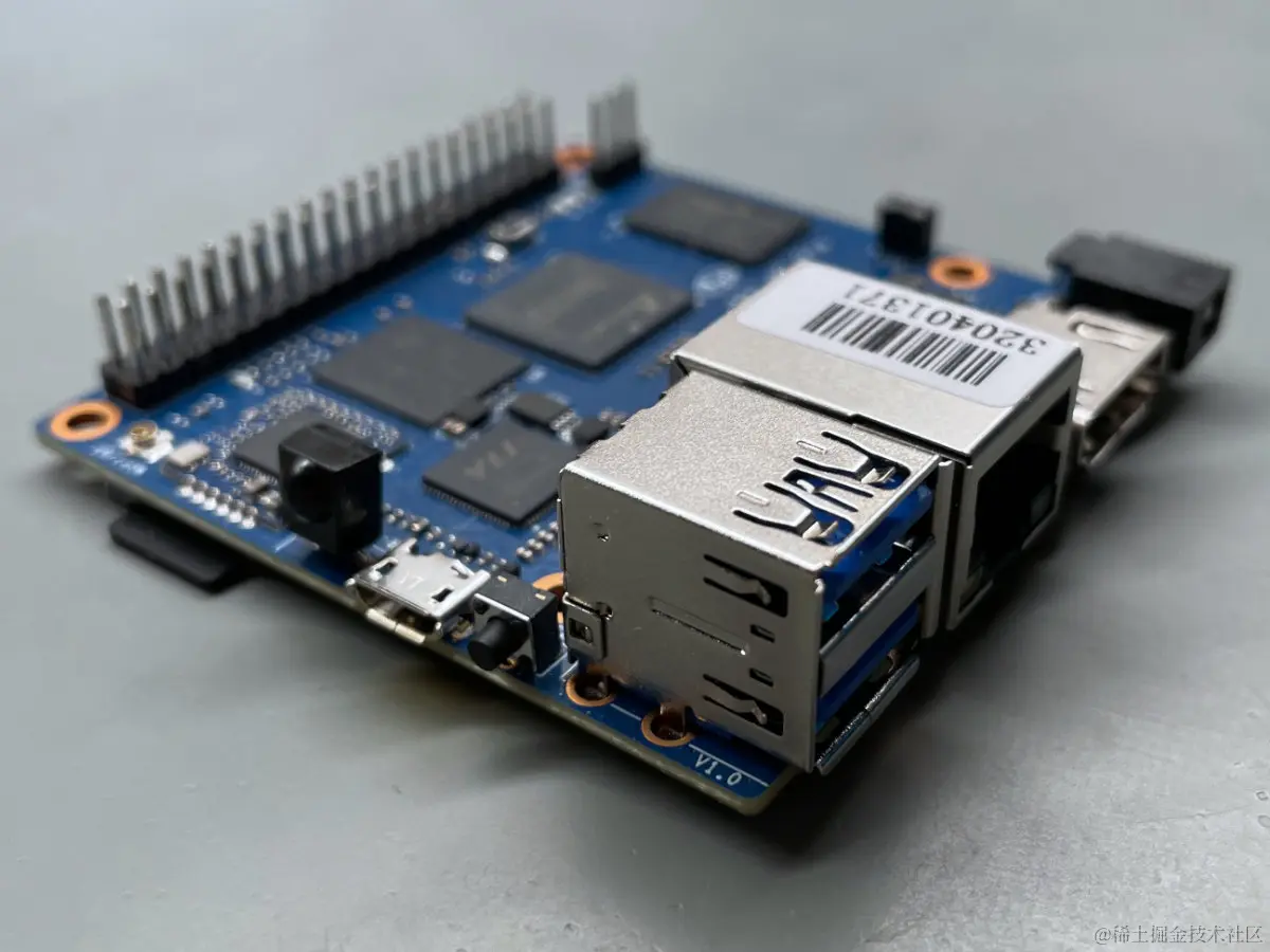 板上还有两个接头。一个小的用于 UART 调试探针,另一个是经典的 40 引脚,其引脚布局类似于 Raspberry Pi 4 接头。