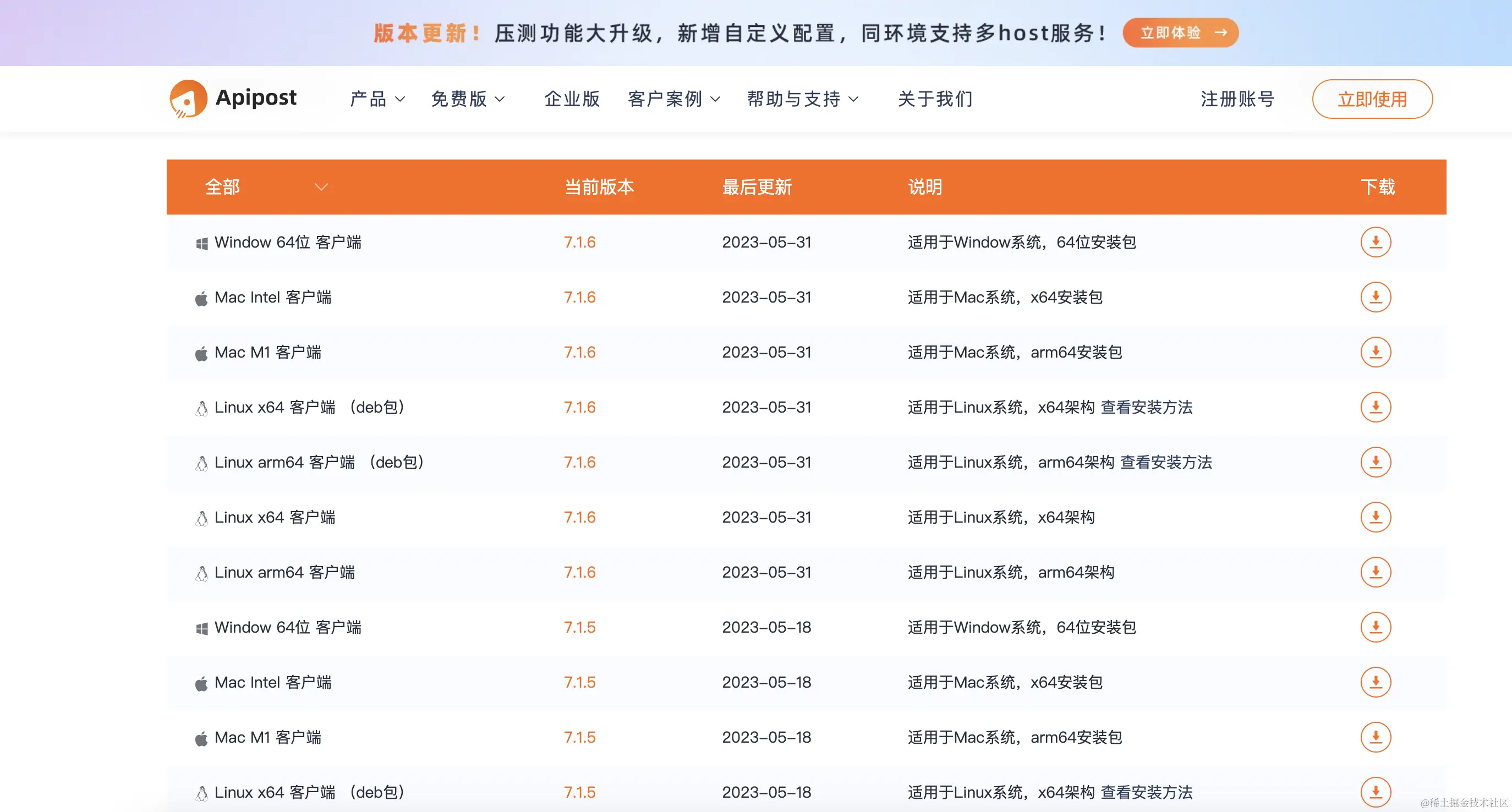 Apipost支持Windows、Linux、Mac等多种环境的多个版本。 可以直接在官网下载对应版本,也可以直接在官网登录使用SASS版