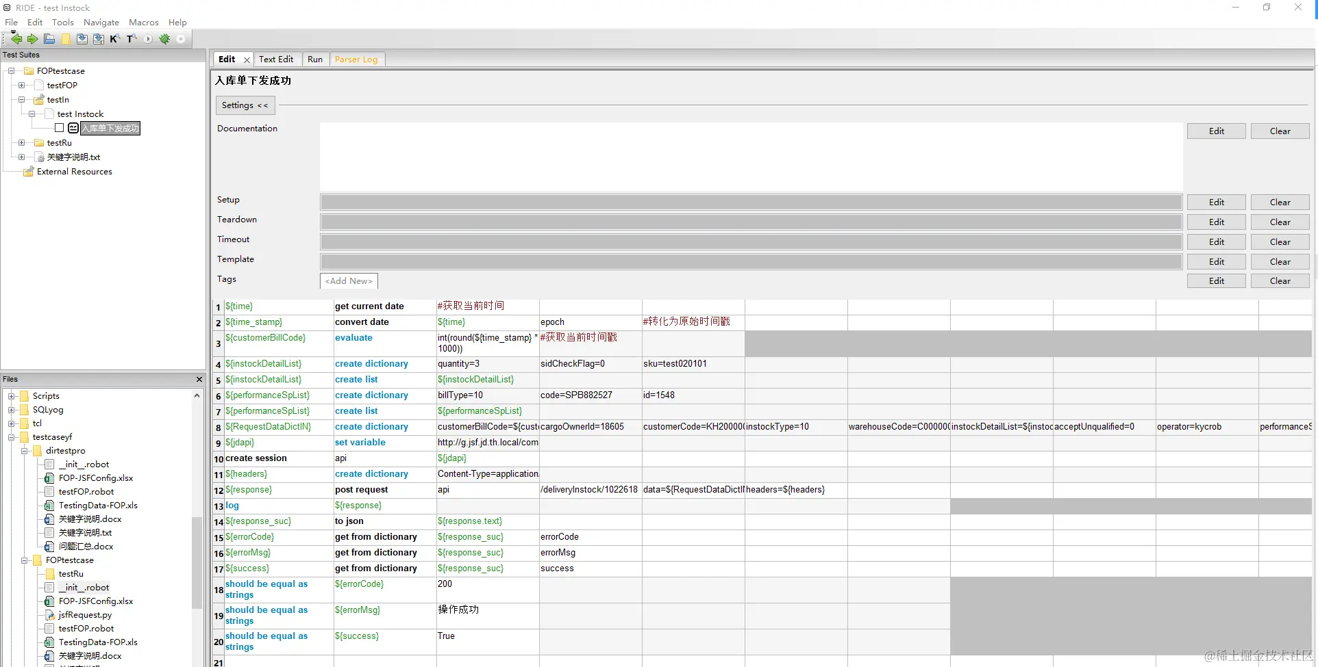好!那么我们根据上边的思路来试着编写一条用例吧!在这里呢我就以我们常用的比较简单的国际供应链履约调度系统的入库单接口为例: