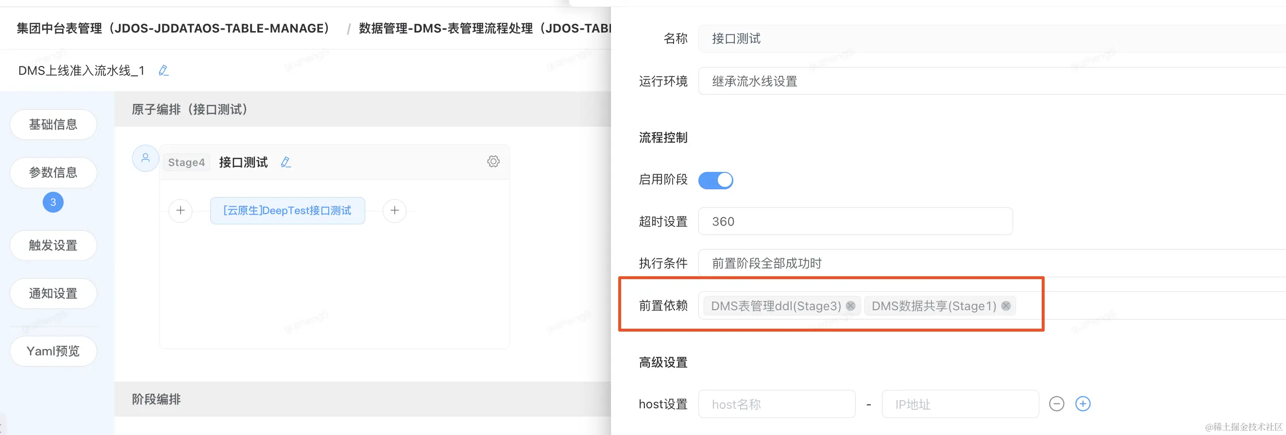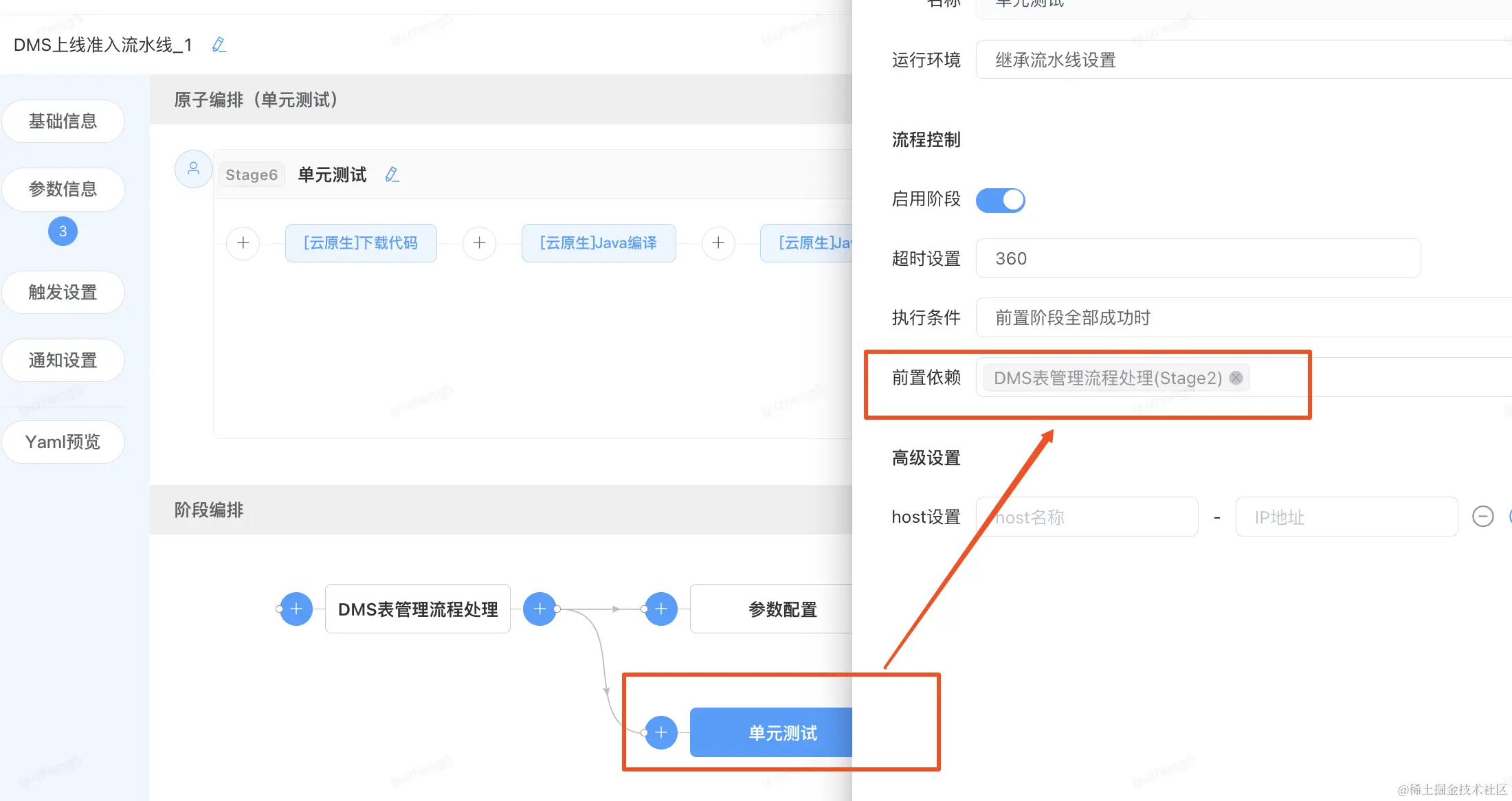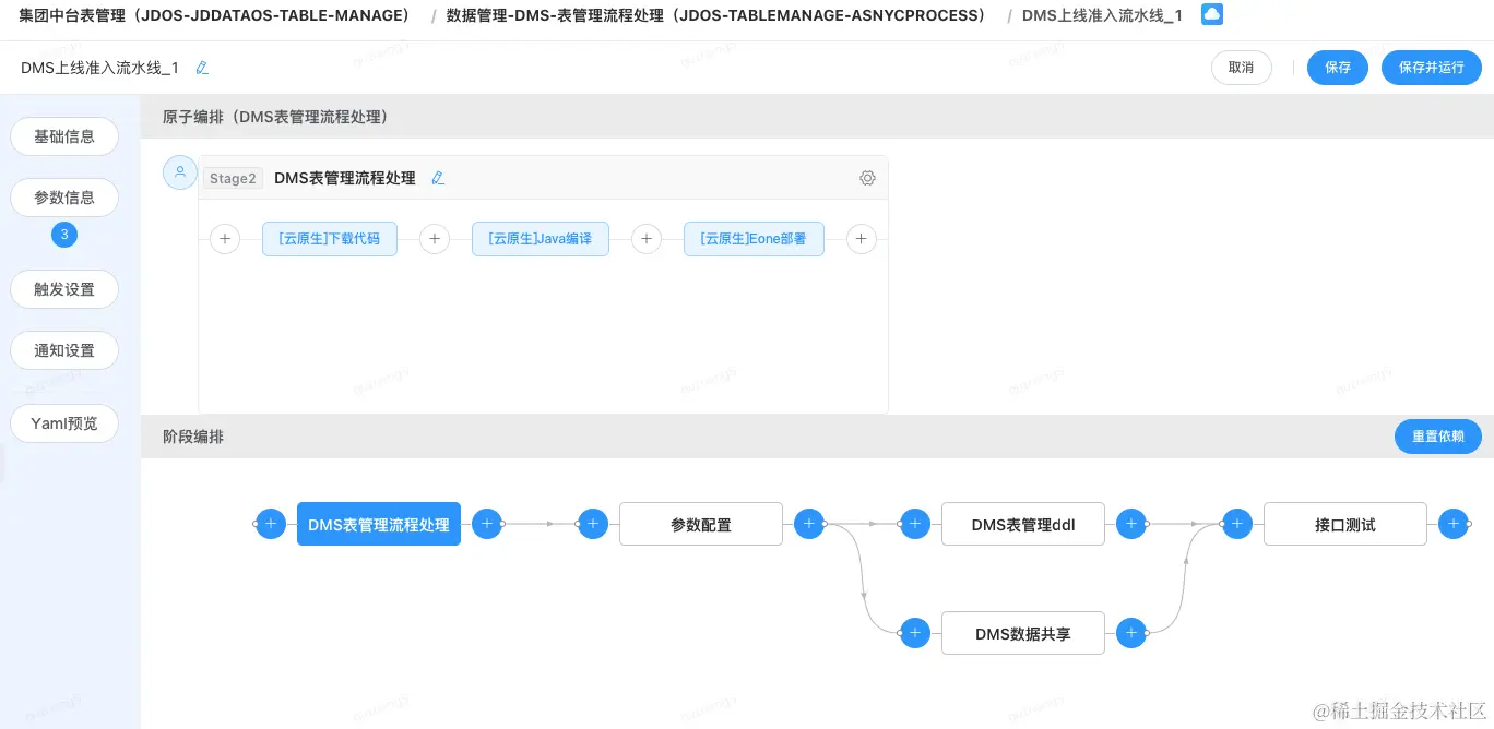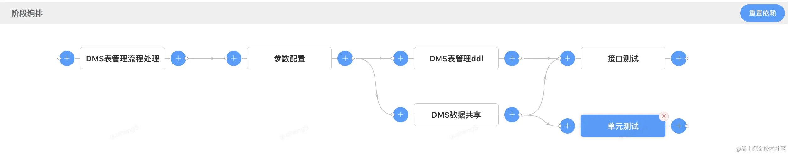 查看单元测试阶段的依赖设置,前置依赖-“DMS表管理流程处理”