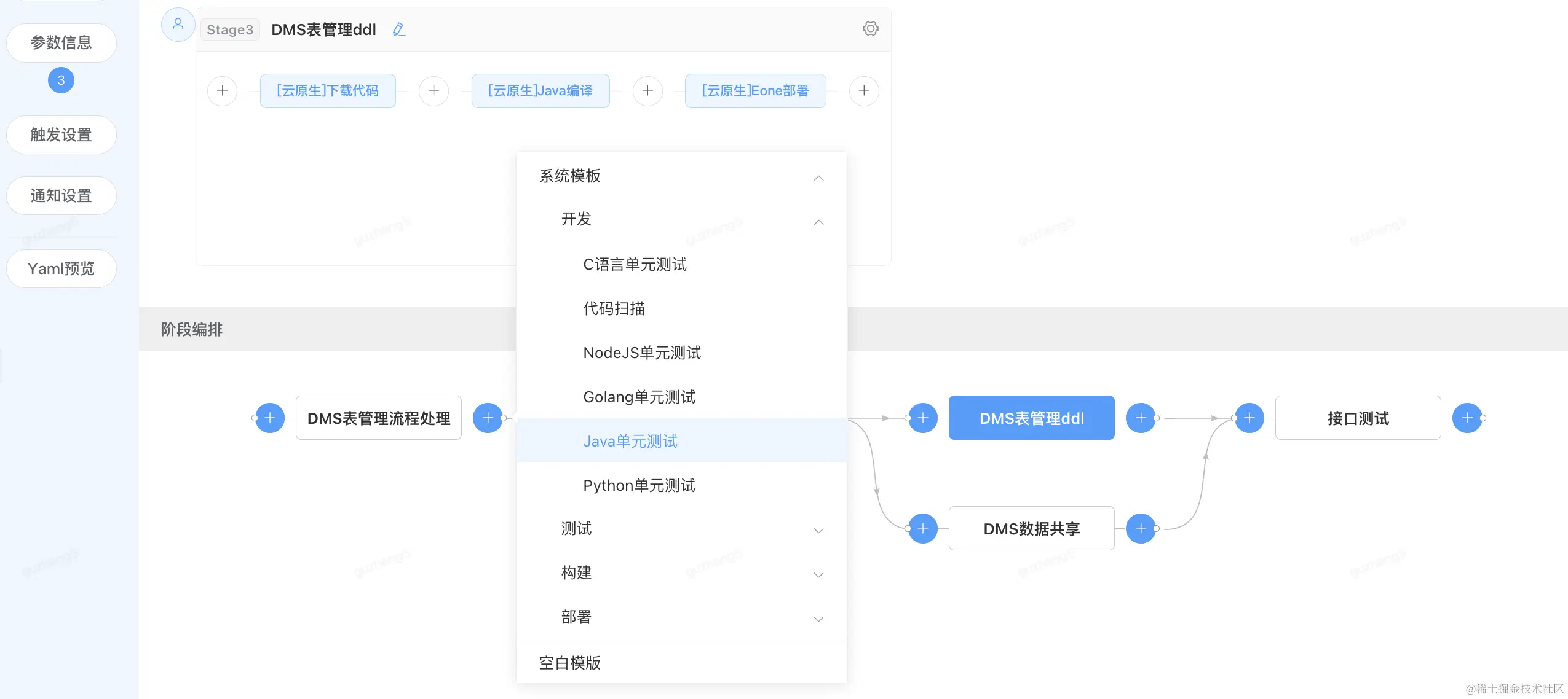 当调整“单元测试阶段”到DMS数据共享阶段之后执行