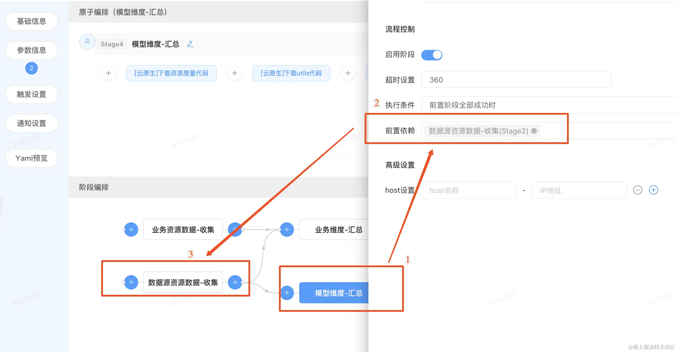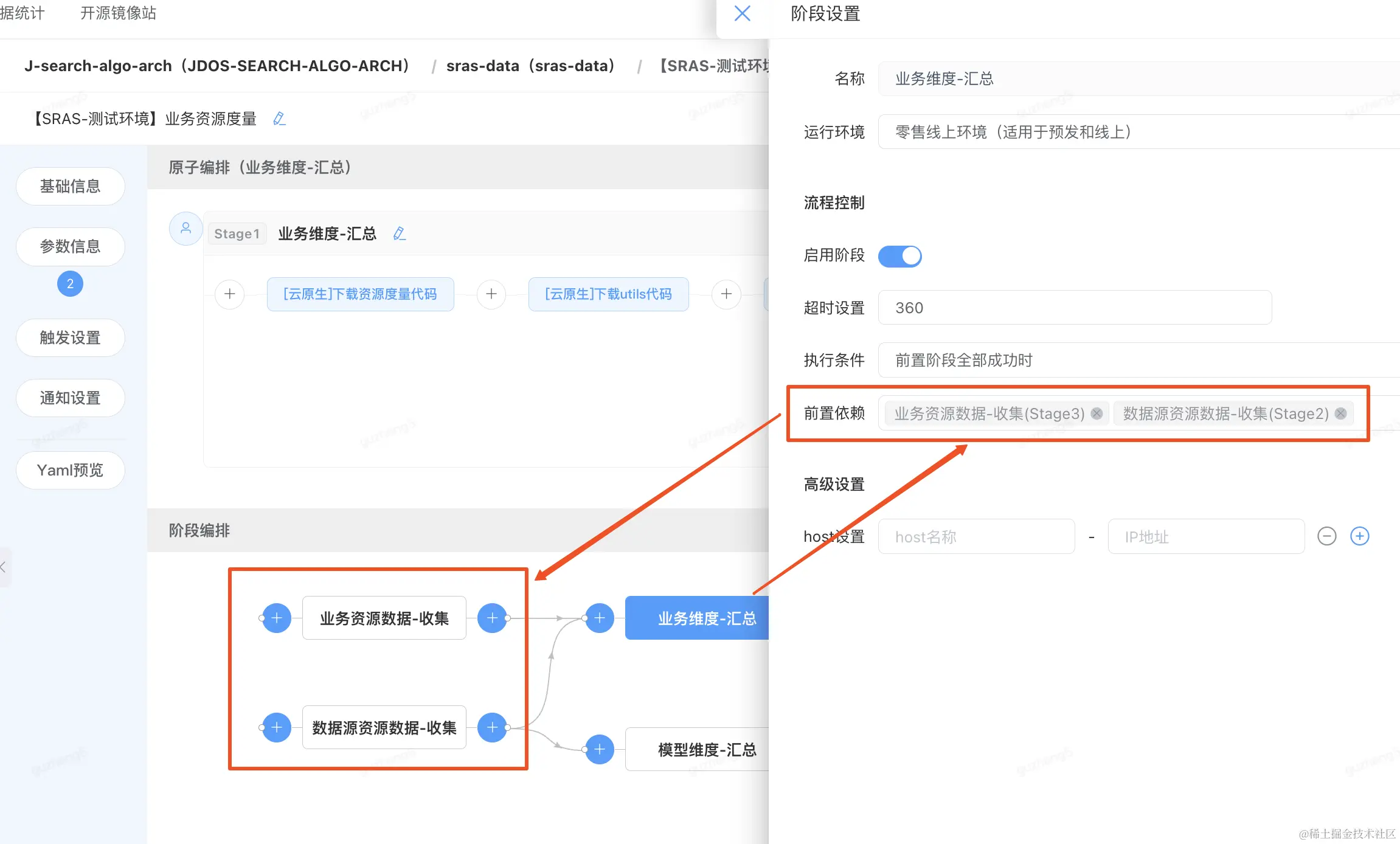◦阶段级(stage):使用“DAG依赖声明方式”描述流程,这也是业界主流的灵活编排方式,适用于编排比较复杂的流程