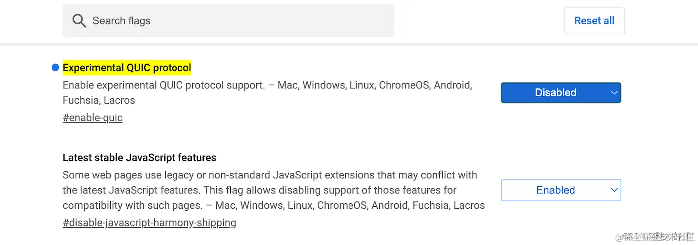 Now you’ll see a highlighted result labeled Experimental QUIC protocol. For this setting, change it to Disabled: