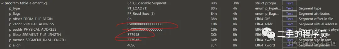 p_vaddr_VIRTUAL_ADDRESS 与 p_memsz_SEGMENT_RAM_LENGTH 表示了内存中的段。