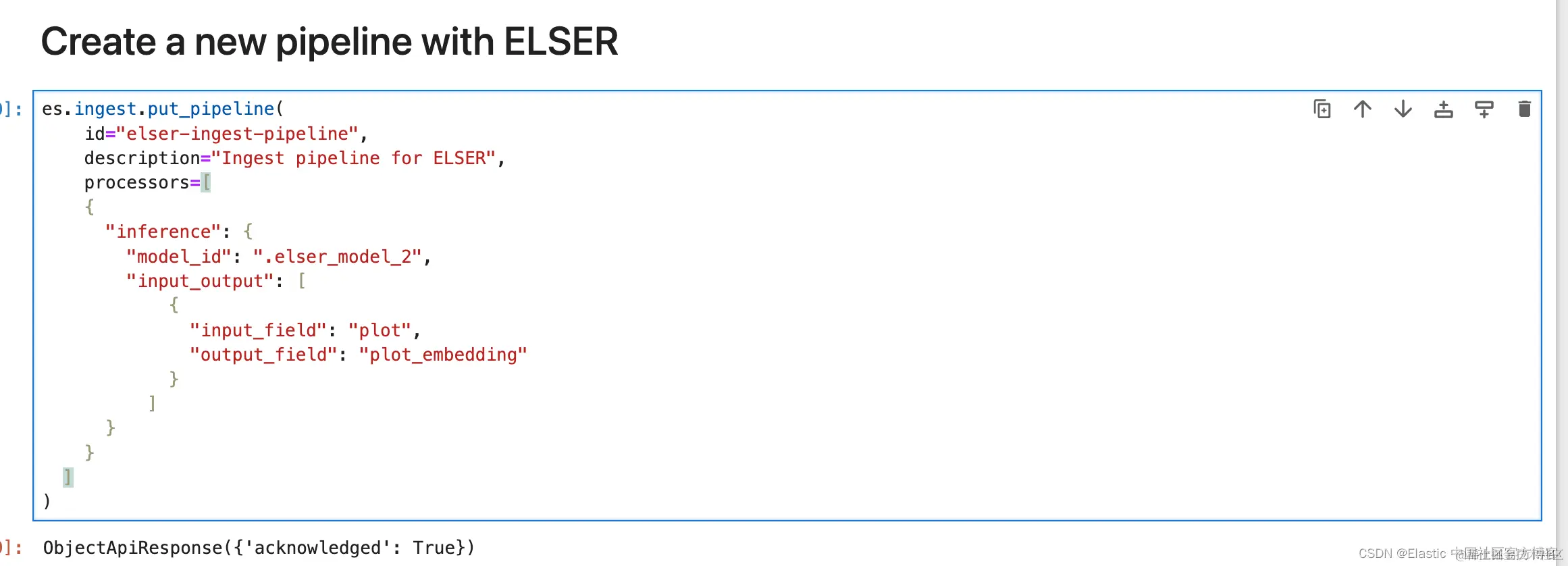 接下来,我们将使用 ELSER 模型 .elser_model_2 创建管道