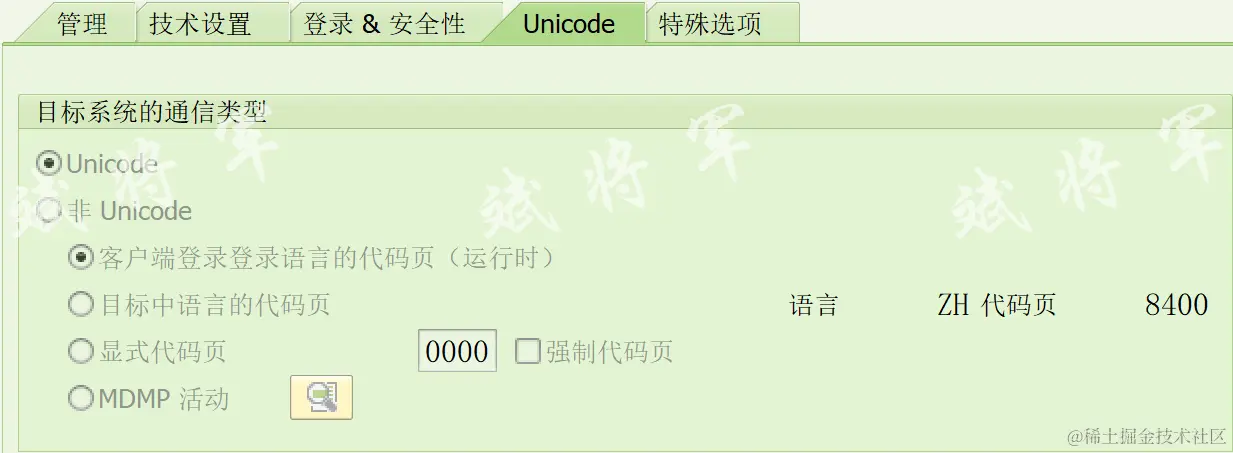 Unicode: 表示目标系统能够处理Unicode字符集。Unicode是一种全球通用的字符编码标准,用于表示世界上几乎所有语言的字符。使用Unicode通讯类型,可以在SAP系统中处理并传输多种语言的数据,包括特殊字符和非拉丁字母字符。