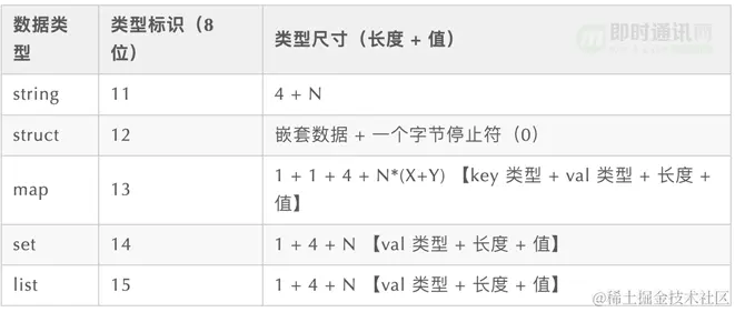 - 2) 变长类型 -> T-L-V 模式,即:字段类型 + 字段序号 + 字段长度 + 字段值。