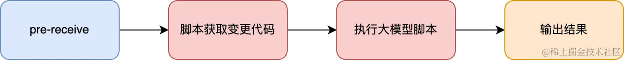 - 代码推送到服务器后:在执行 git push 命令后,代码仓库服务器接收到代码提交,会触发pre-receive 钩子。钩子调用脚本,使用 git diff 命令获取变更代码并对变更内容 code review。