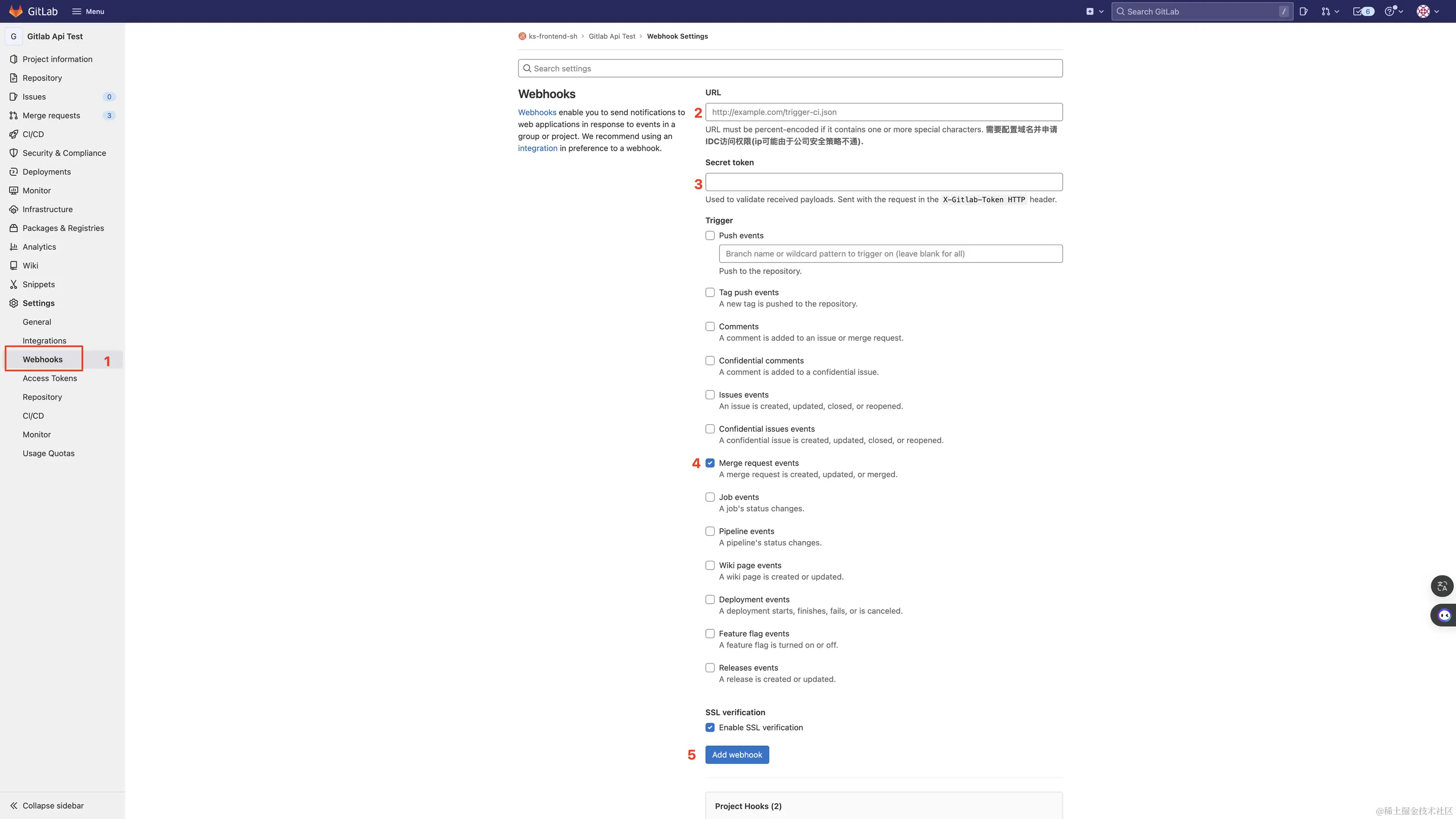 - 配置触发 webhook 所请求的url。