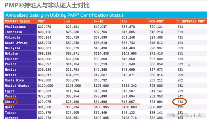 - 在《项目管理薪酬调查报告-(第11版)中文版》中,曾给出一组数据:与非认证人士对比,PMP持证人平均年薪要高21%: