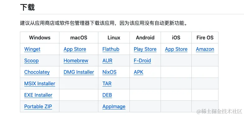 可以到平台对应的应用商店下载,比如appstore。或者到GitHub页面找下载,给出了各个平台的下载链接。