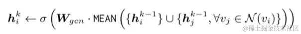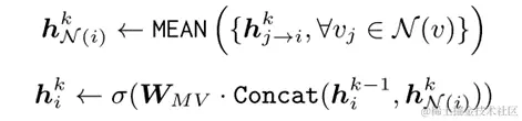传播迭代次数为 K,每个节点最终嵌入为e (vi) = hiK