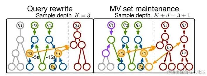 MVs 管理是一个重要的问题,已经研究了几十年。传统的方法利用 DBMS 中的优化器来有效地估计 MVs 的好处,并在此基础上迭代地选择合适的 MVs 来实现。因此,即使在给定新的查询工作负载的情况下从头构建 MV,它们也可以实现高效率,但是由于纯粹使用优化器进行收益估计是不准确的,因此产生了低质量 MV。