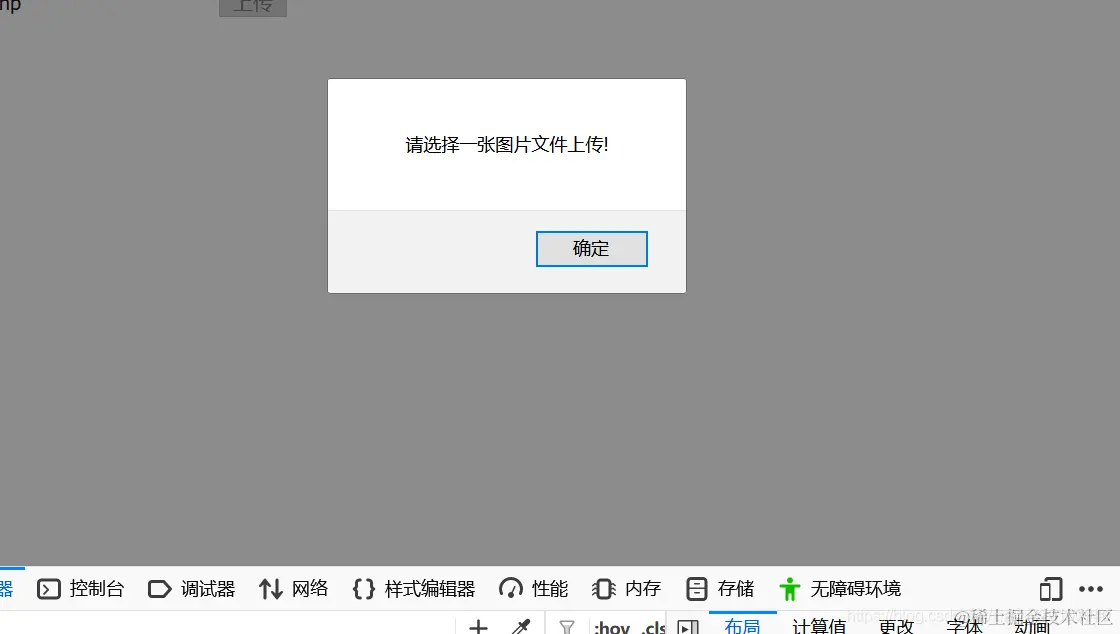 f12检查源码,发现前端有一个js验证,有一个白名单过滤,只允许上传png或jpg文件。