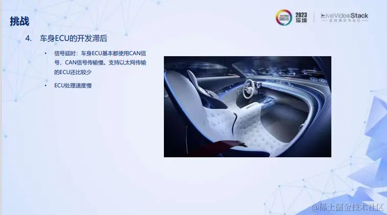 第四个挑战是车身ECU的开发滞后。比如氛围灯功能的移植,车身ECU的技术赶不上手机的技术前沿的体验。