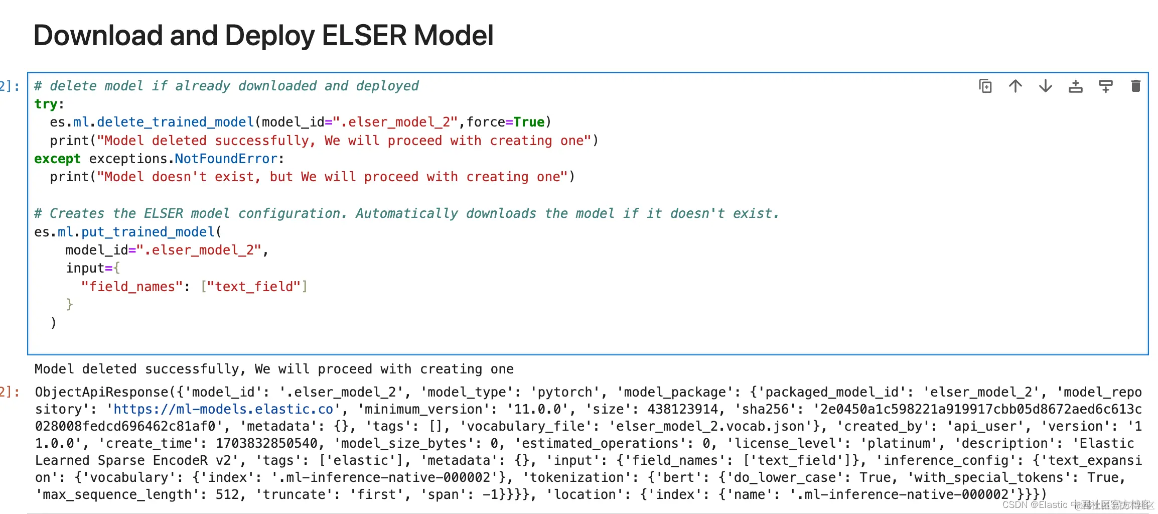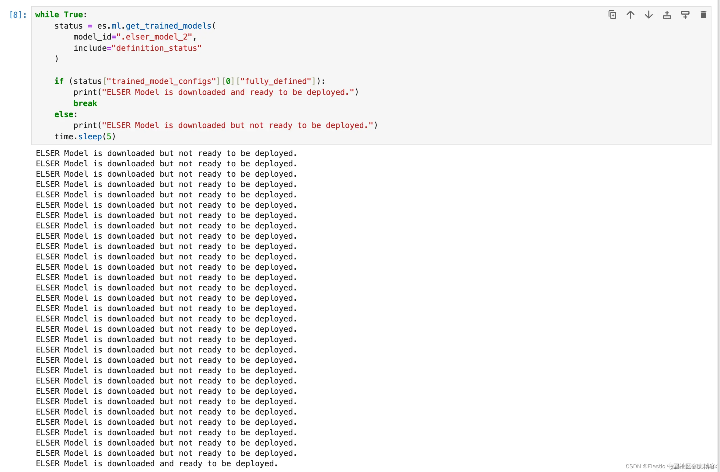 8. print("ELSER Model is downloaded and ready to be deployed.")