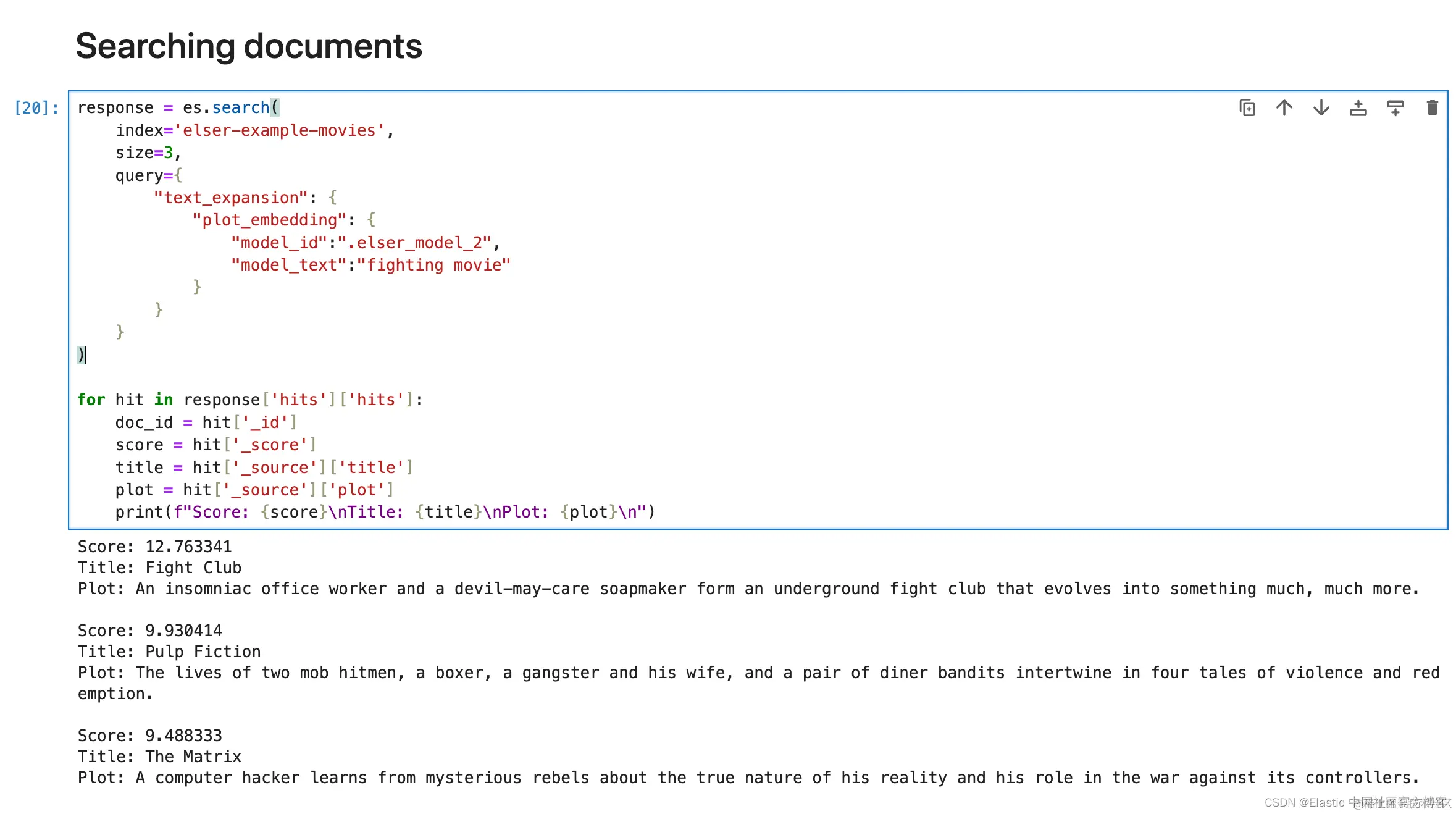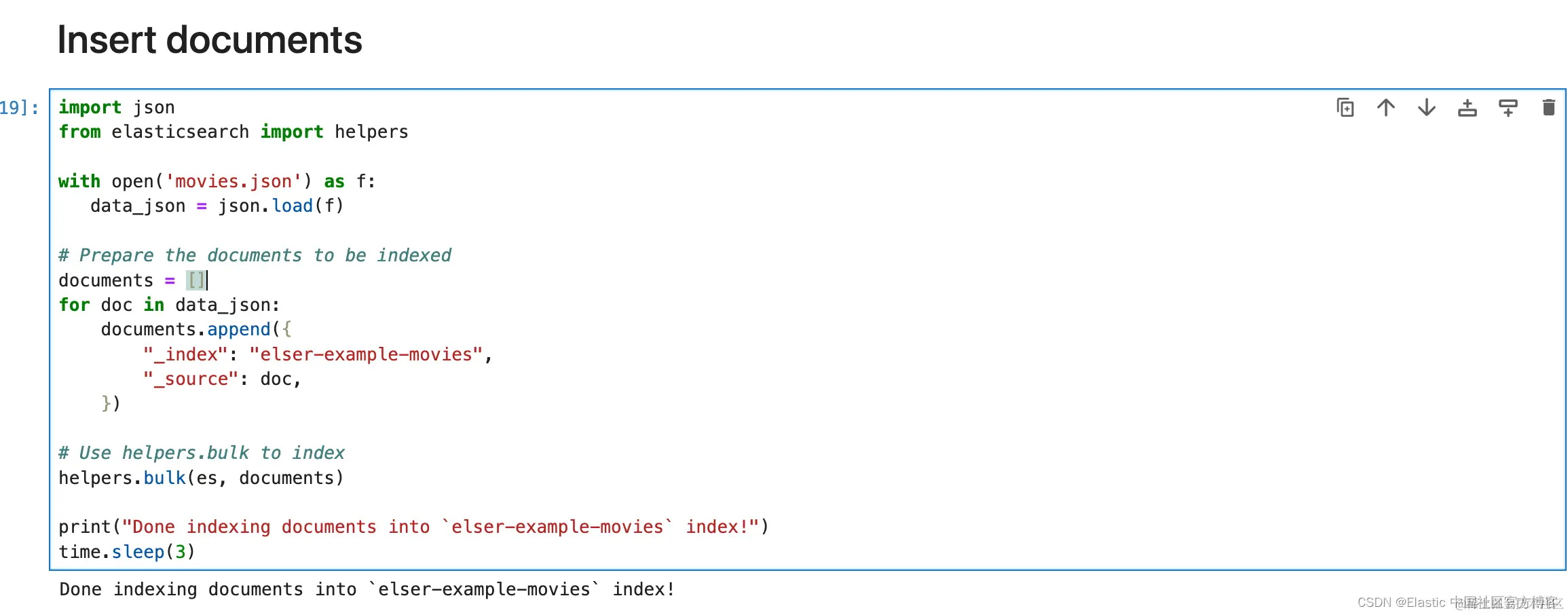 18. print("Done indexing documents into `elser-example-movies` index!")