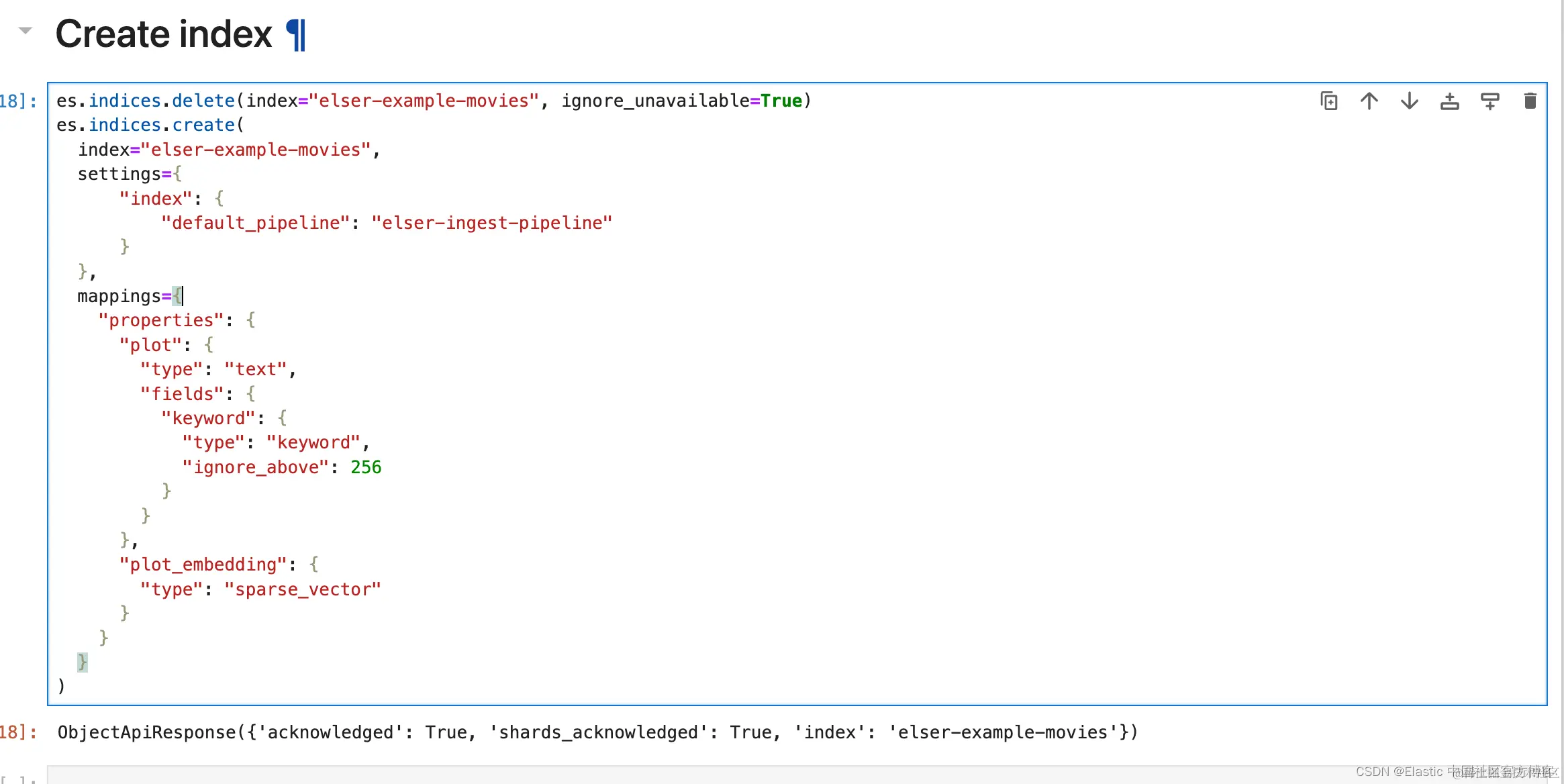 让我们使用我们需要的映射创建一个名为 elser-example-movies 的索引。