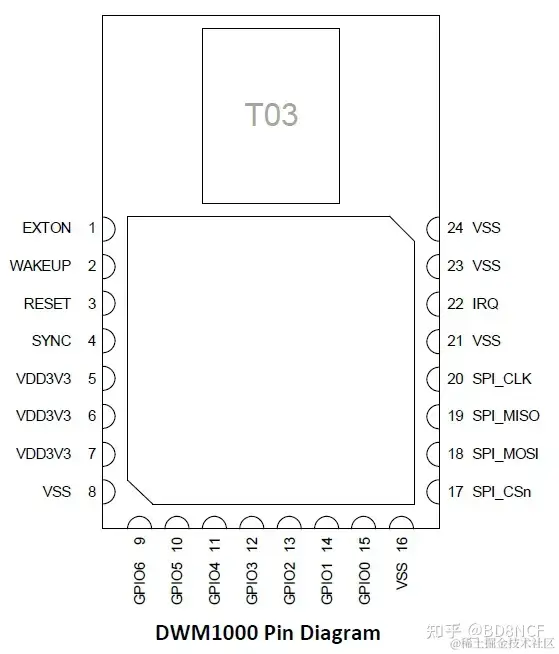 UWB芯片我们使用DW1000。玩电子的都知道,射频电路的设计一向都比较难。所以模电工程师比数电工程师更值钱,越老越值钱。所以,我们不直接使用 DW1000 芯片,而是使用模组 DWM1000。原厂把DW1000封装成一个模组,射频部分我们不用操心了,模组有一组SPI接口,我们可以愉快的把它接到MCU的GPIO上。