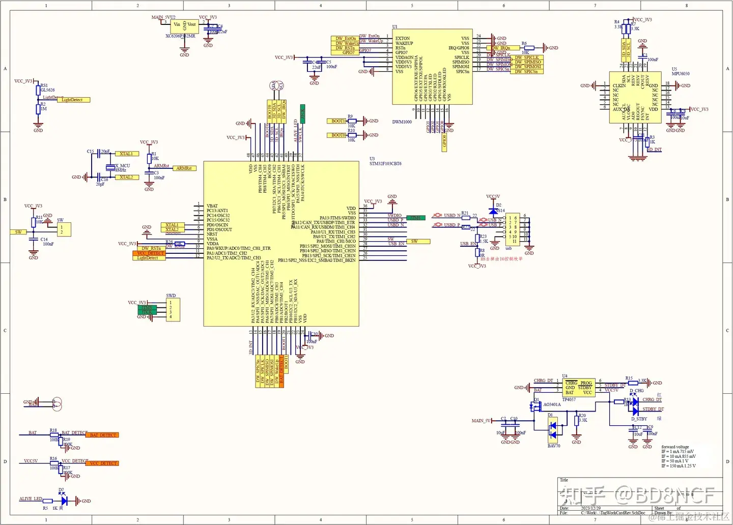 无论是基站还是标签,因为使用了DWM1000模块,硬件设计主要是数字电路部分,都是典型的电路,基本上没有什么难度。