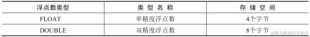 备注:1.浮点数可以使用(M,D)的方式进行表示,(M,D)表示当前数的整数位和小数位一共显示M位数字,其中,小数点后会显示D位数字,M被称为精度,D被称为标度