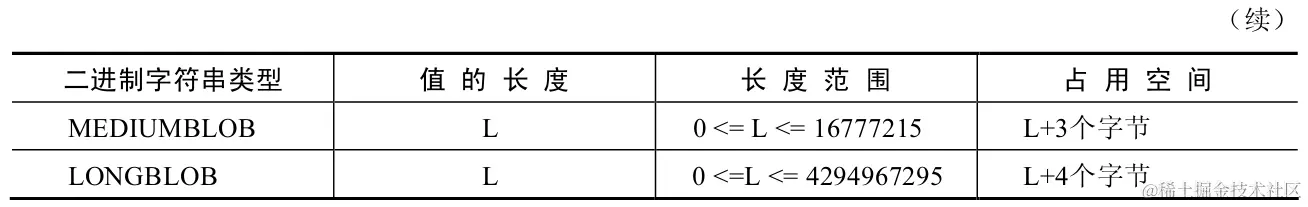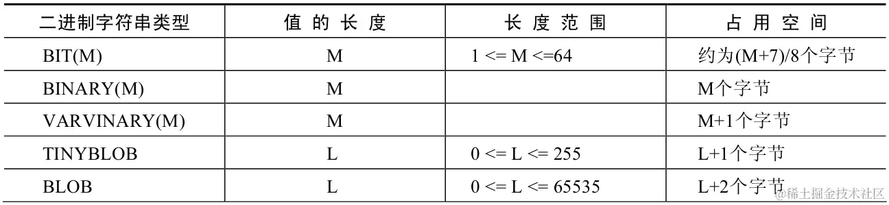 二进制字符串类型占用空间