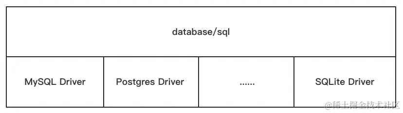 我们可以把标准库中的database/sql包看作一个数据库操作抽象层,因为database/sql并不直接连接并操作数据库,而是为不同的数据库驱动提供了统一的API,database/sql包与驱动包(driver)的关系如下图所示:
