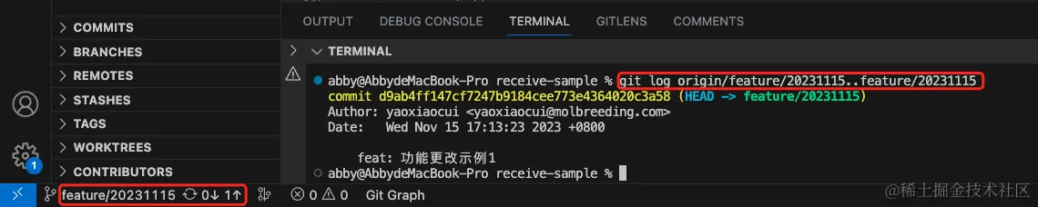 一个常见的使用场景就是查看本地未推送的 commit 列表,如下图所示: