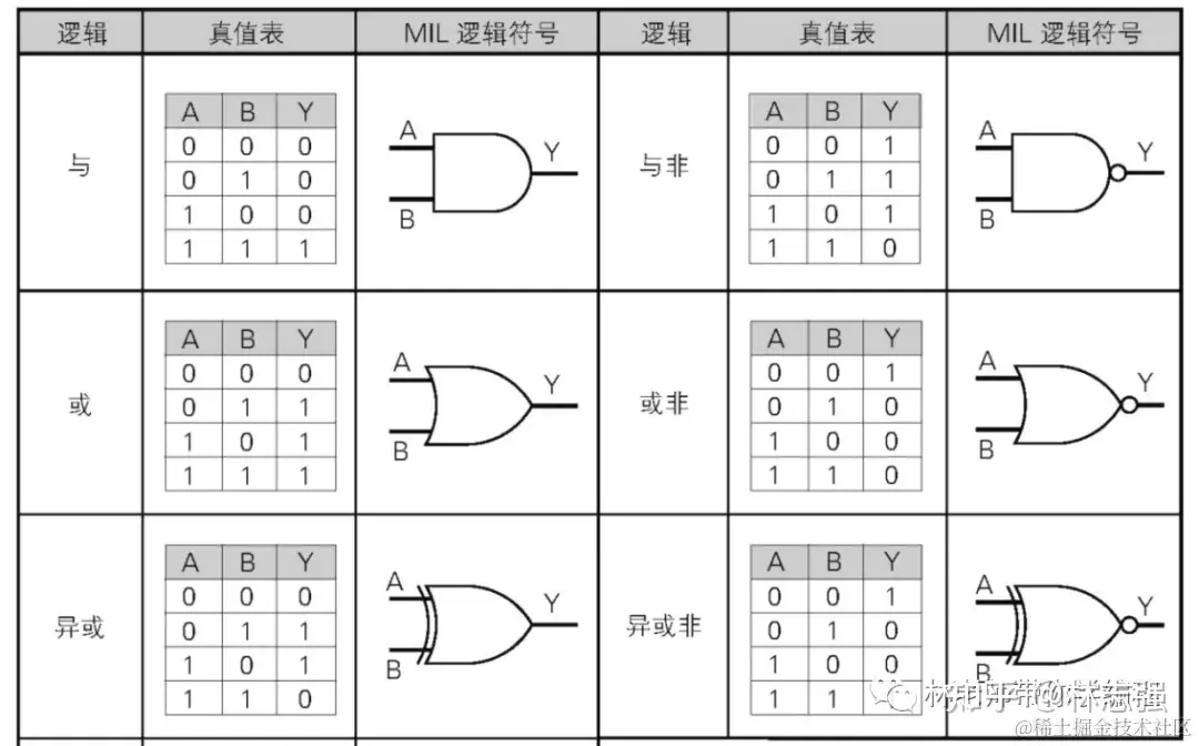 这是采用半导体组成的 【与门】 ,也就是当A和B都是1的情况下,Y才会是1,其它都是0。
