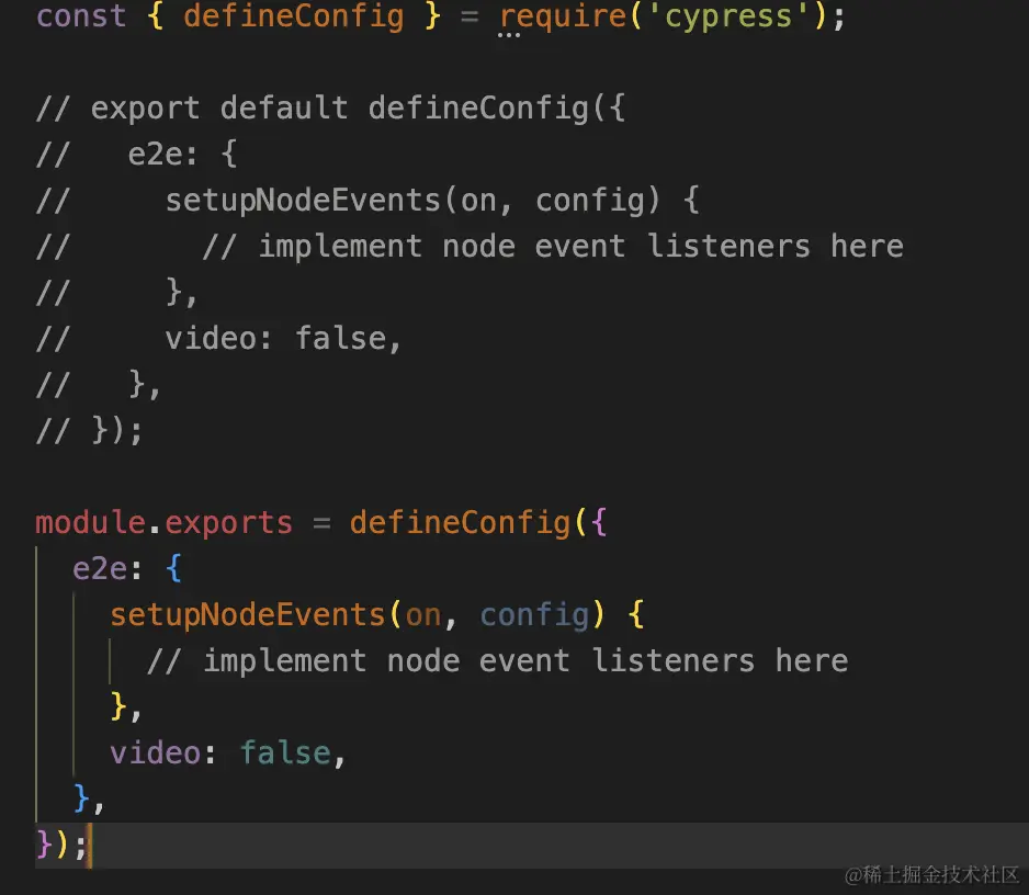 当然这个问题,很简单,cypress默认生成的配置文件是.ts结尾的,修改成.js,然后代码做一些修改即可: