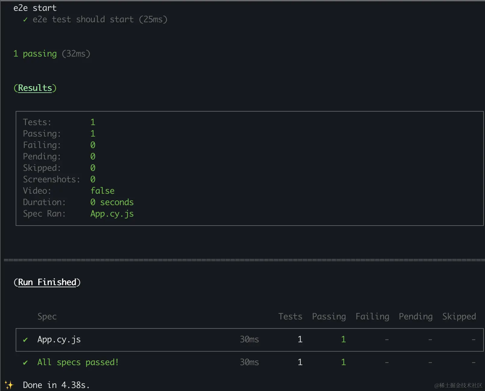 终端执行 cypress run,结果如下: