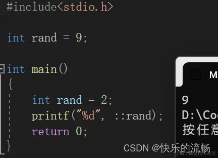 那么,如果我想要打印全局变量怎么办呢?这时,C语言就办不到了,C++就引进了一个操作符——作用域操作符(: :)