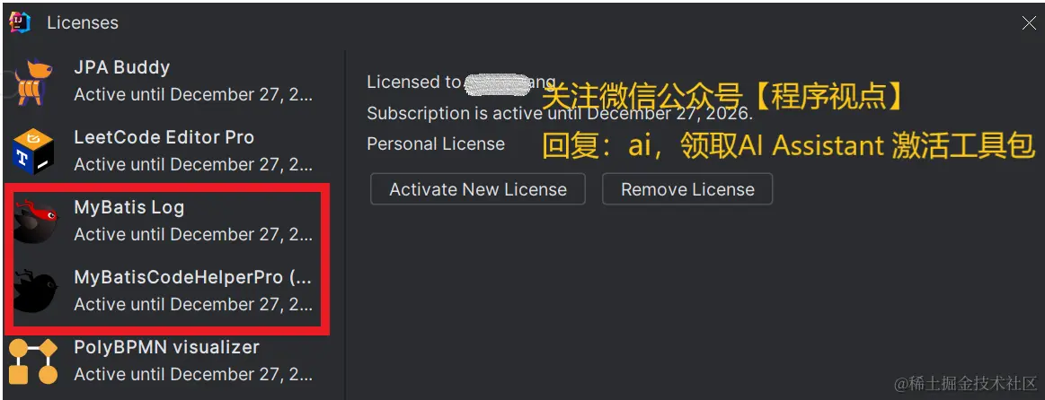 好啦!独乐乐不如众乐乐,这里分享一份独有的 AI Assistant 插件激活工具包,仅限本号粉丝享用!咳~咳,激活后请低调使用!