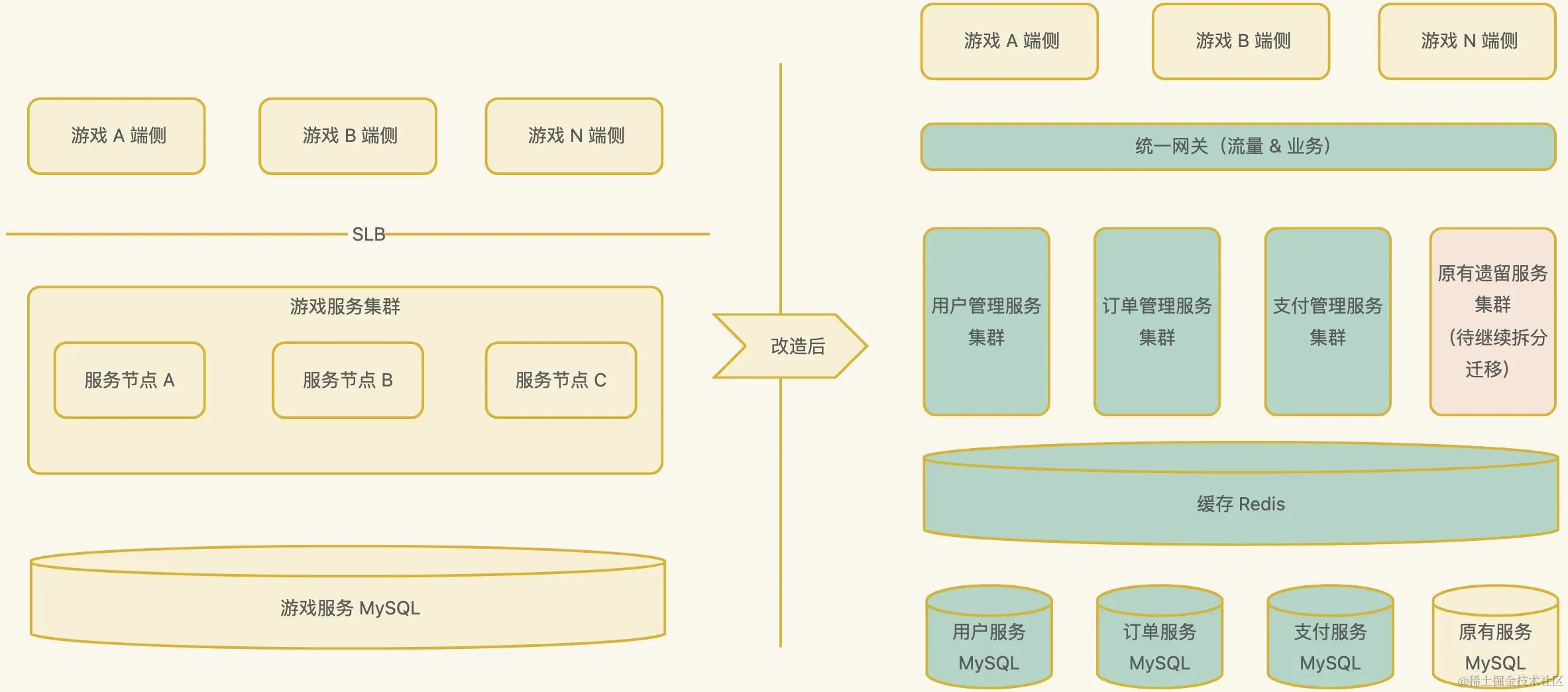 改造前后的架构对比示意图如下: