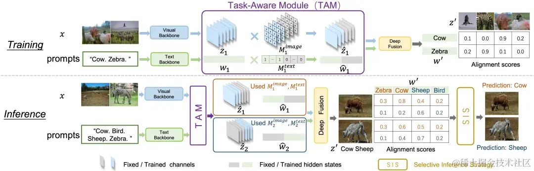 类增量物体检测要求目标检测器能够持续适应新任务的同时不能忘记已学习的旧任务,在实际应用中是迫切需要的能力,其主要挑战在于检测器对已学习的旧任务的灾难性遗忘。许多基于蒸馏和回放的方法已被提出来缓解这个问题。然而,它们通常在纯视觉架构上进行学习,忽视了文本线索的强大表征能力,这在某种程度上限制了它们的性能。在本文中,我们提出了任务感知的语言-图像表征来缓解灾难性遗忘,为基于语言-图像的类增量目标检测引入了新的范式。首先,我们展示了语言-图像检测器在缓解灾难性遗忘方面的显著优势。其次,我们提出了一种学习任务感知的语言-图像表征方法,克服了直接利用语言-图像检测器进行类增量目标检测的缺点。具体来说,通过在训练阶段采用特征隔离方式学习不同任务的语言-图像表征,而在推理阶段使用由任务特定语言-图像表征来对齐预测得分。提出的方法使的语言-图像检测器可以更实用于类增量目标检测任务。在COCO 2017和Pascal VOC 2007上的大量实验证明在各种类增量目标检测的设置下,提出的方法都能达到当前最好的结果。
