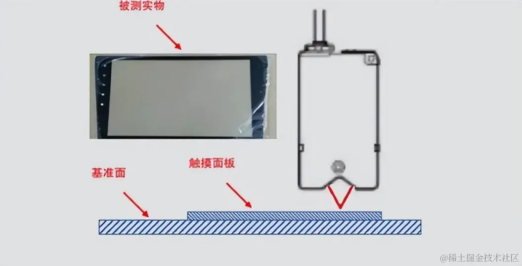 • 以大理石台面为基准,检测车载触摸面板的厚度值,精度要求5μm,面板上存在亚克力膜,厚度 在50μm-80μm。