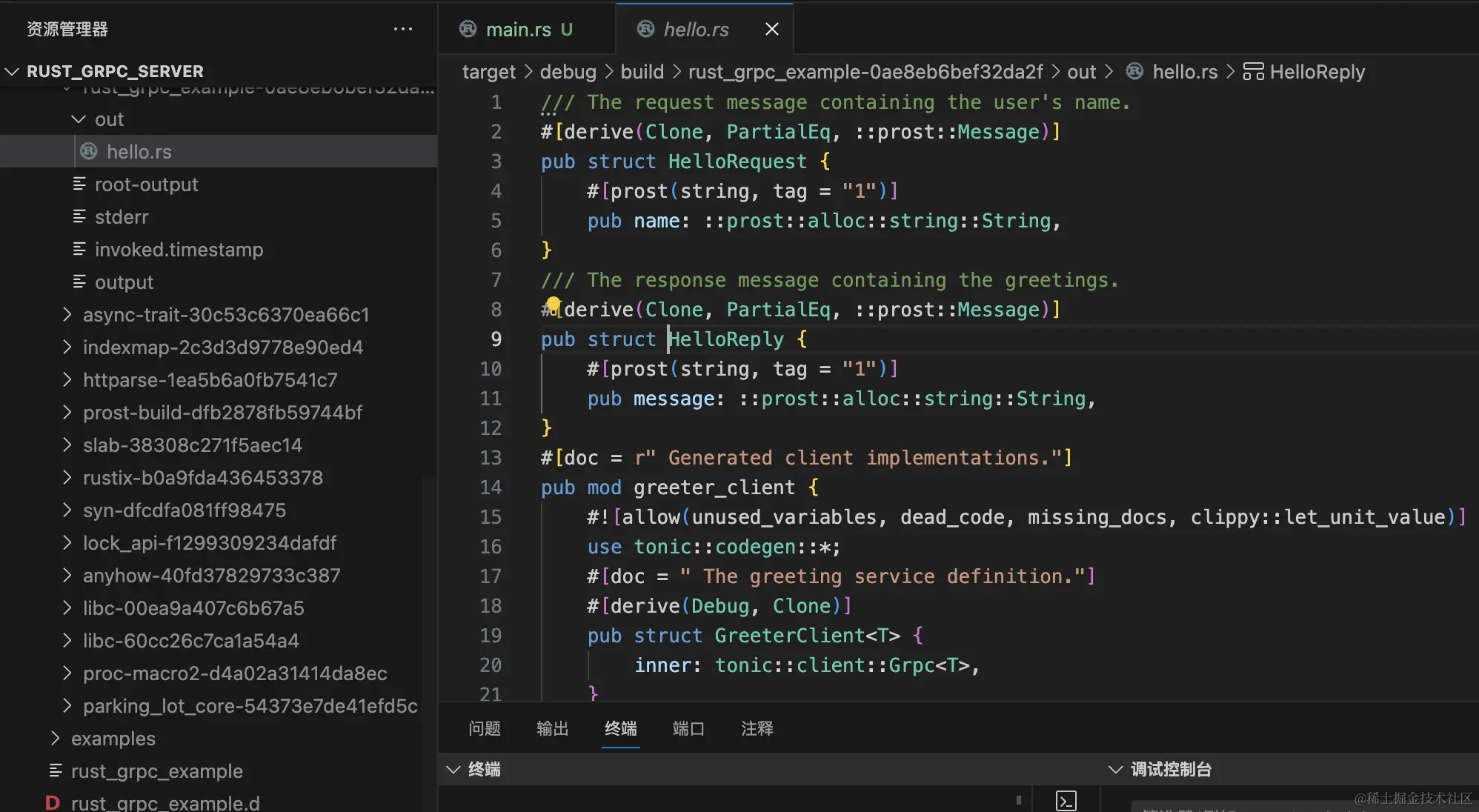 在server项目的src/main.rs中,创建一个gRPC服务器: