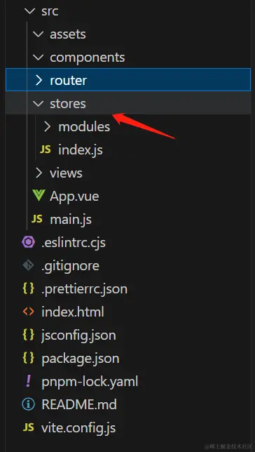 可以在 store 文件下创建一个新的文件夹 modules,里面用来存放我们的每一个状态管理模块。同时创建 index.js 文件作为模块的出口。