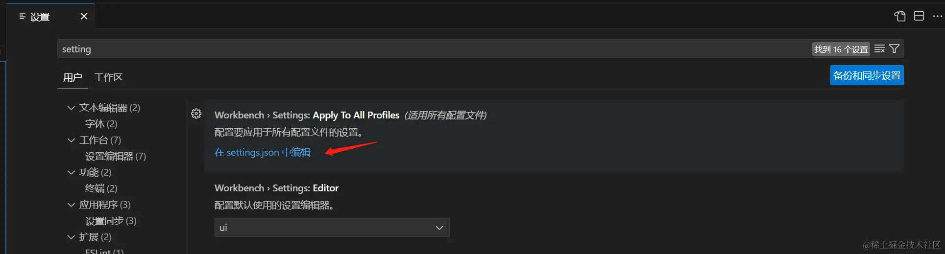 在上一步我们已经安装了 eslint 插件,接下来需要打开 vscode 的配置文件 settings.json,并进行如下配置
