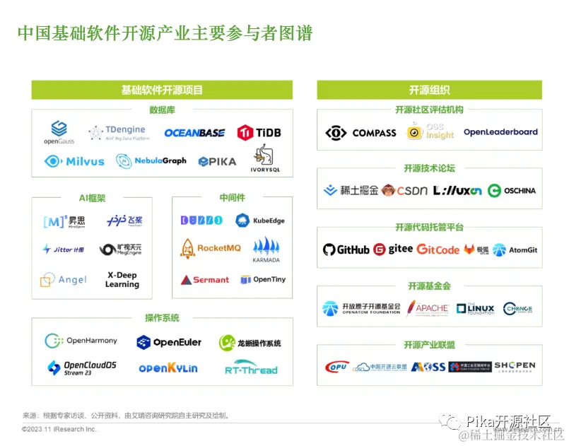 - 12 月 13 日,Pika[已更名 PikiwiDB] 被第三方独立机构 艾瑞咨询研究院 列为 2023 年 “中国基础软件开源产业主要参与者”【DUBBO 亦列其中】