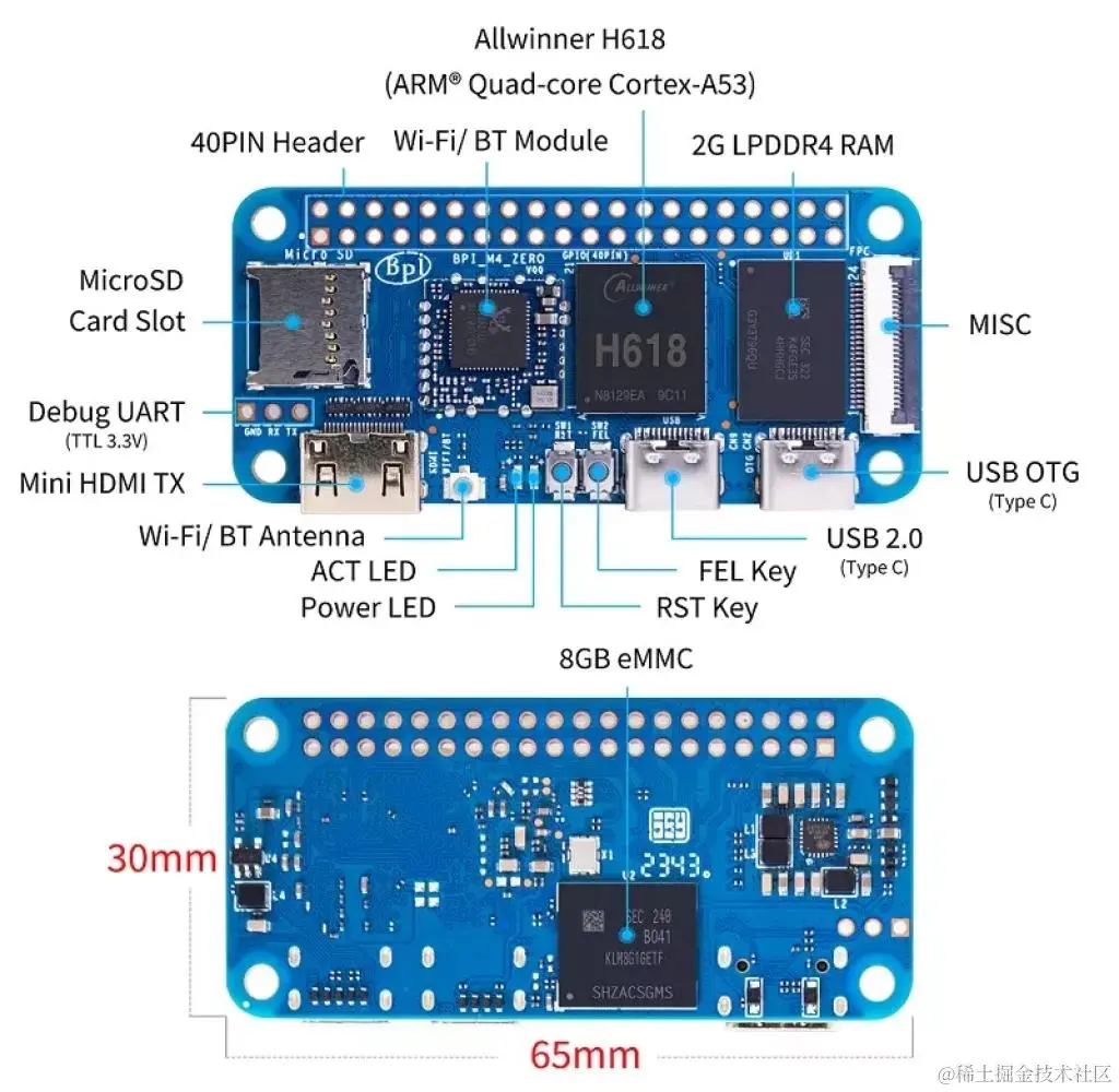 虽然 Raspberry Pi Zero 依赖于 700 MHz 单核 ARM11 处理器和带有 VideoCore IV (VC4) 的 Broadcom 2835 GPU 芯片,但 BPI-M4 Zero通过整合具有四个 Cortex-A53 内核的强大 Allwinner H618 实现了重大飞跃。在 1.5 GHz 下。速度提高 25% 不仅提高了整体性能,而且使 BPI-M4 Zero 成为要求更高的项目和流畅的多任务处理的有吸引力的选择。