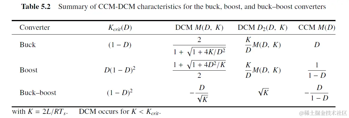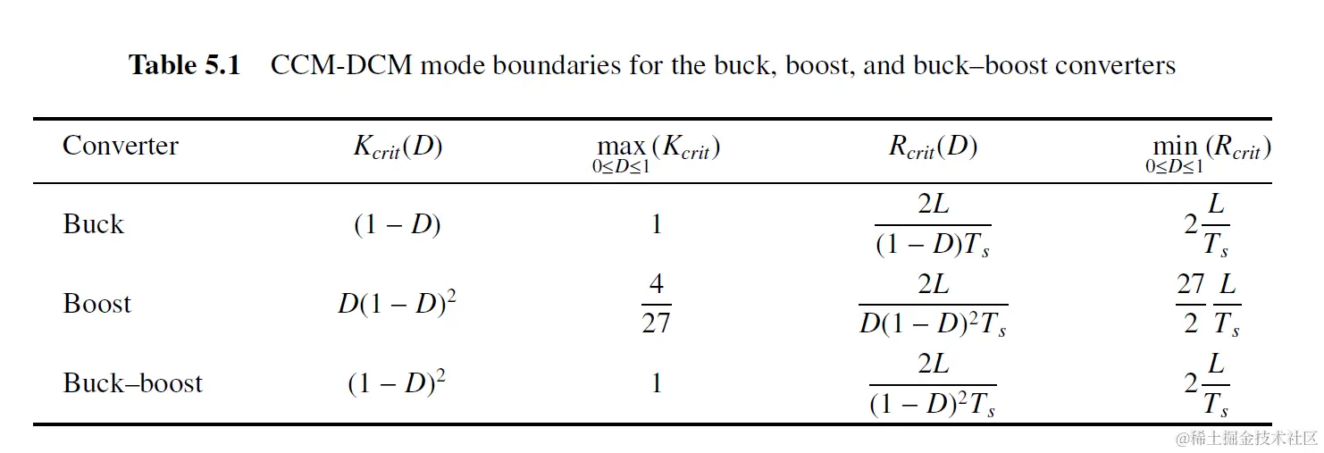 Buck, boost, buck-boost K和Rcrit如下图 所示