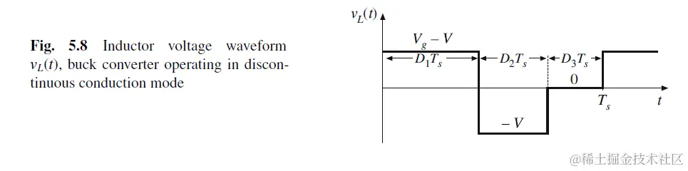 在计算DCM的电压转换比我们依然采用chapter 2的电感伏秒平衡和电容电荷平衡. 另外假设输出电压保持稳定,忽略ripple, 但是不能忽略电感电流的纹波!
